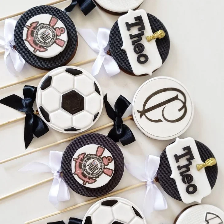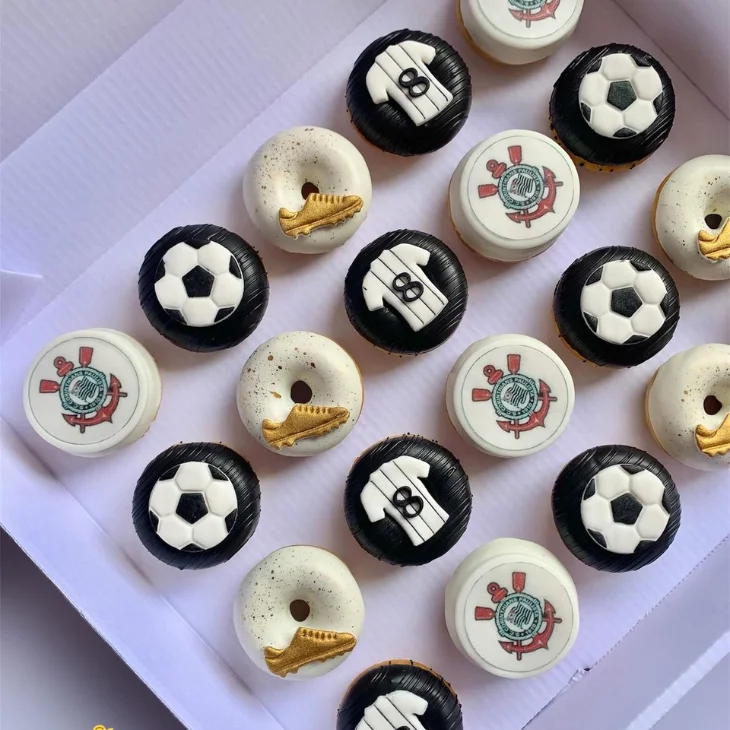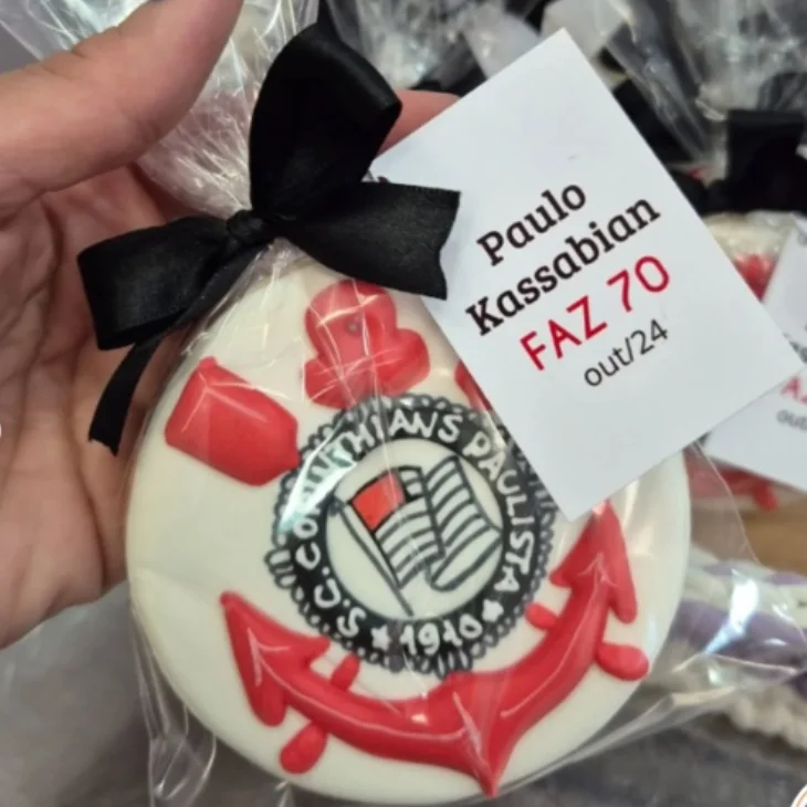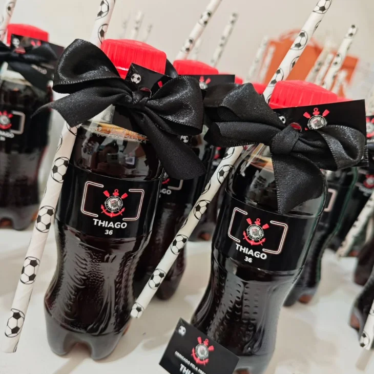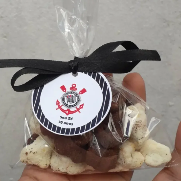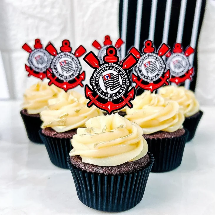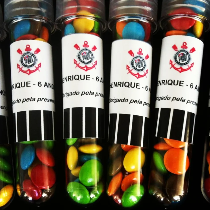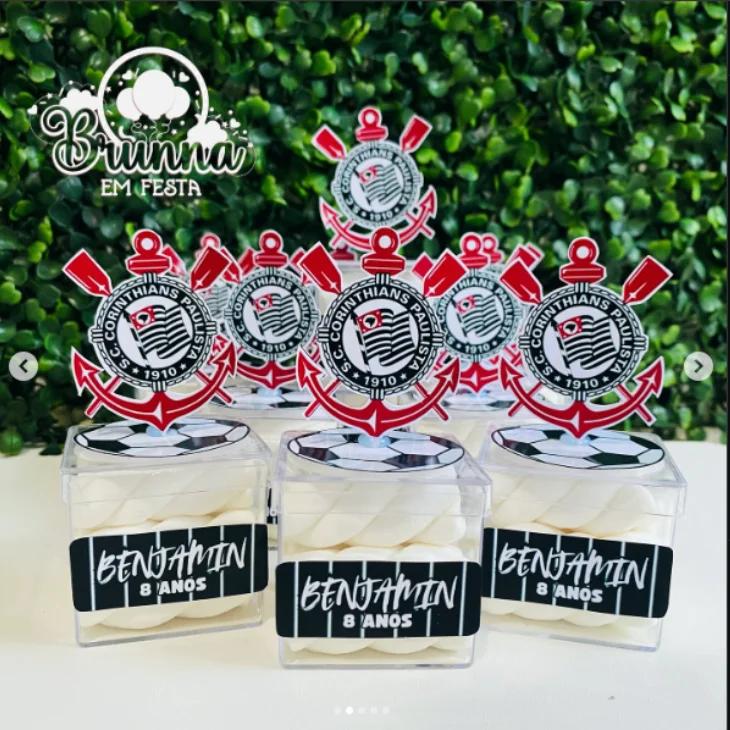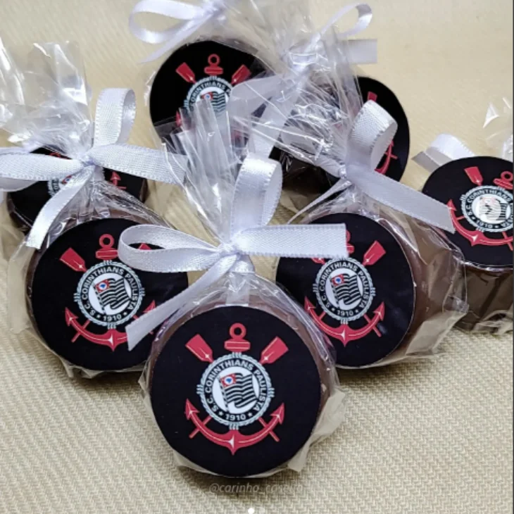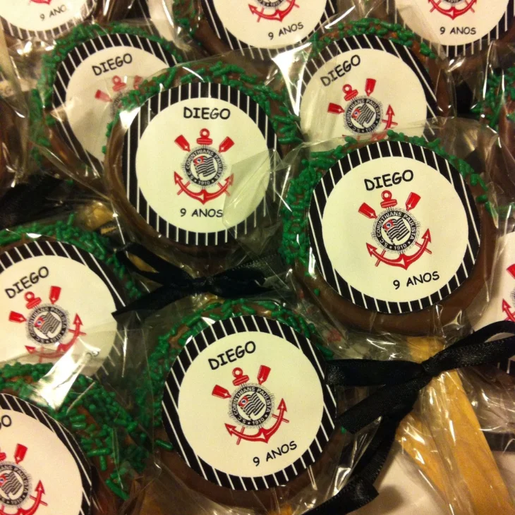 - Lembrancinhas comestíveis como brigadeiros, cookies e balas personalizadas com o tema corinthiano