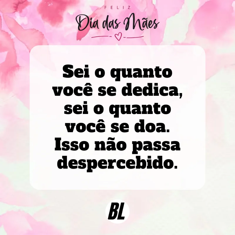 - Hoje e sempre, saiba que admiro imensamente a mãe que você é.