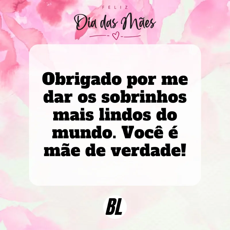 - Você me transformou em tia/tio babão. E eu amo isso. Feliz Dia das Mães!