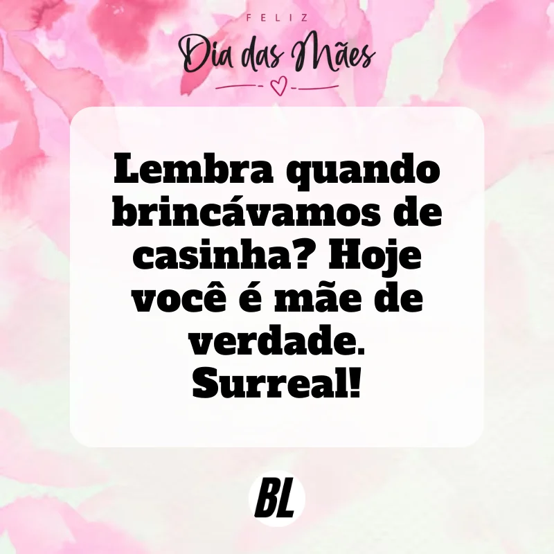 - Lembra quando brincávamos de casinha? Hoje você é mãe de verdade. Surreal!